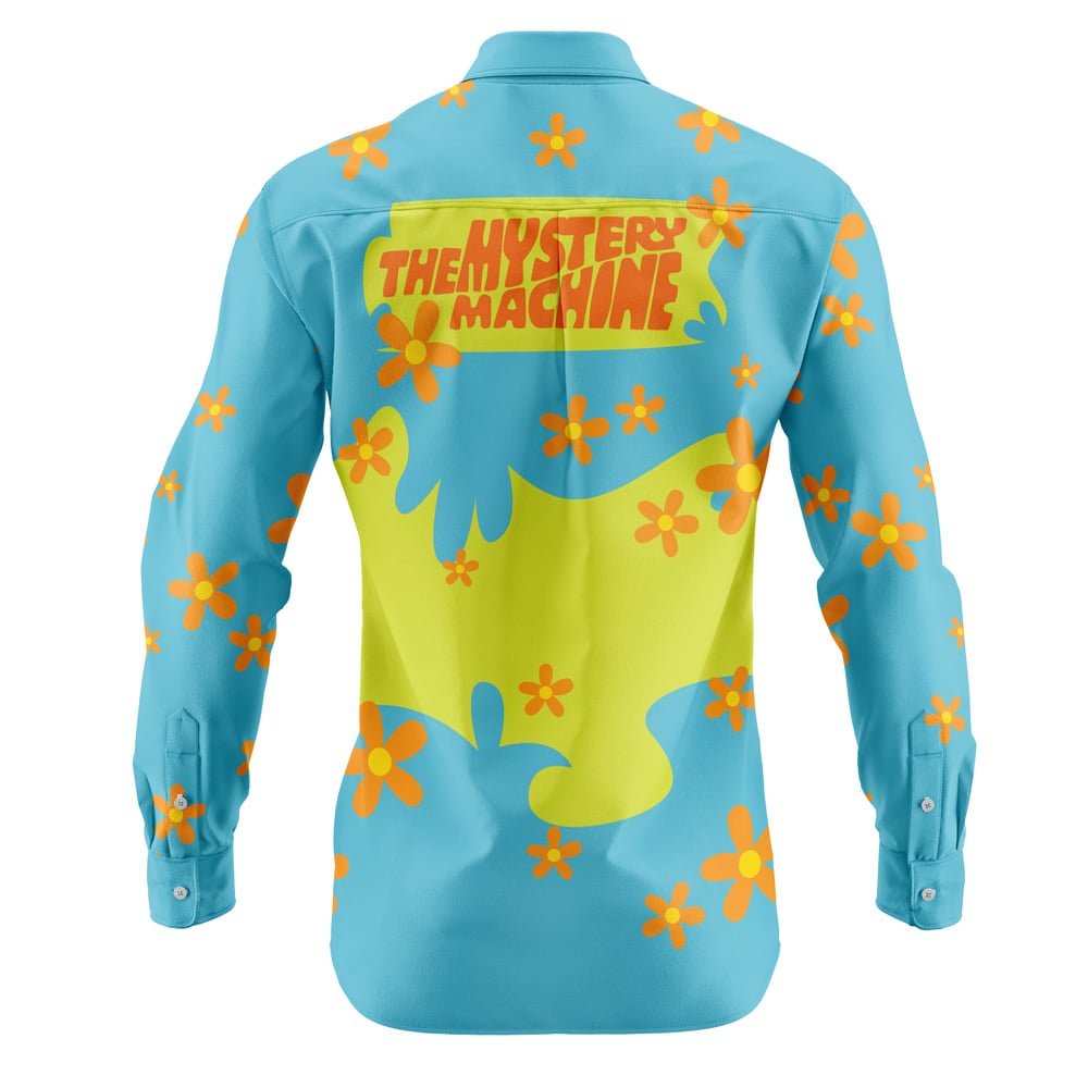 Mystery Machine Pattern Scooby Doo Long Sleeve Button Up Shirt$26.00 USD -
