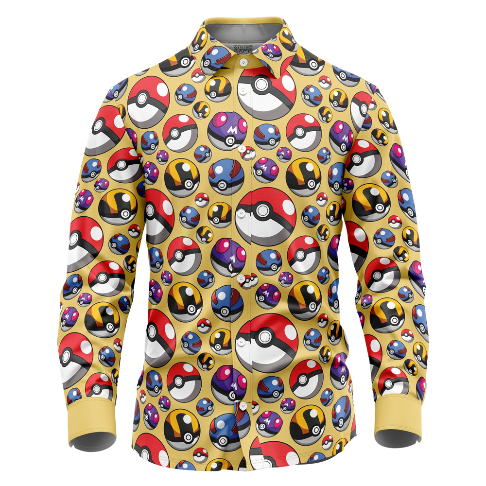 Poke Balls Pokemon Long Sleeve Button Up Shirt$26.00 USD -