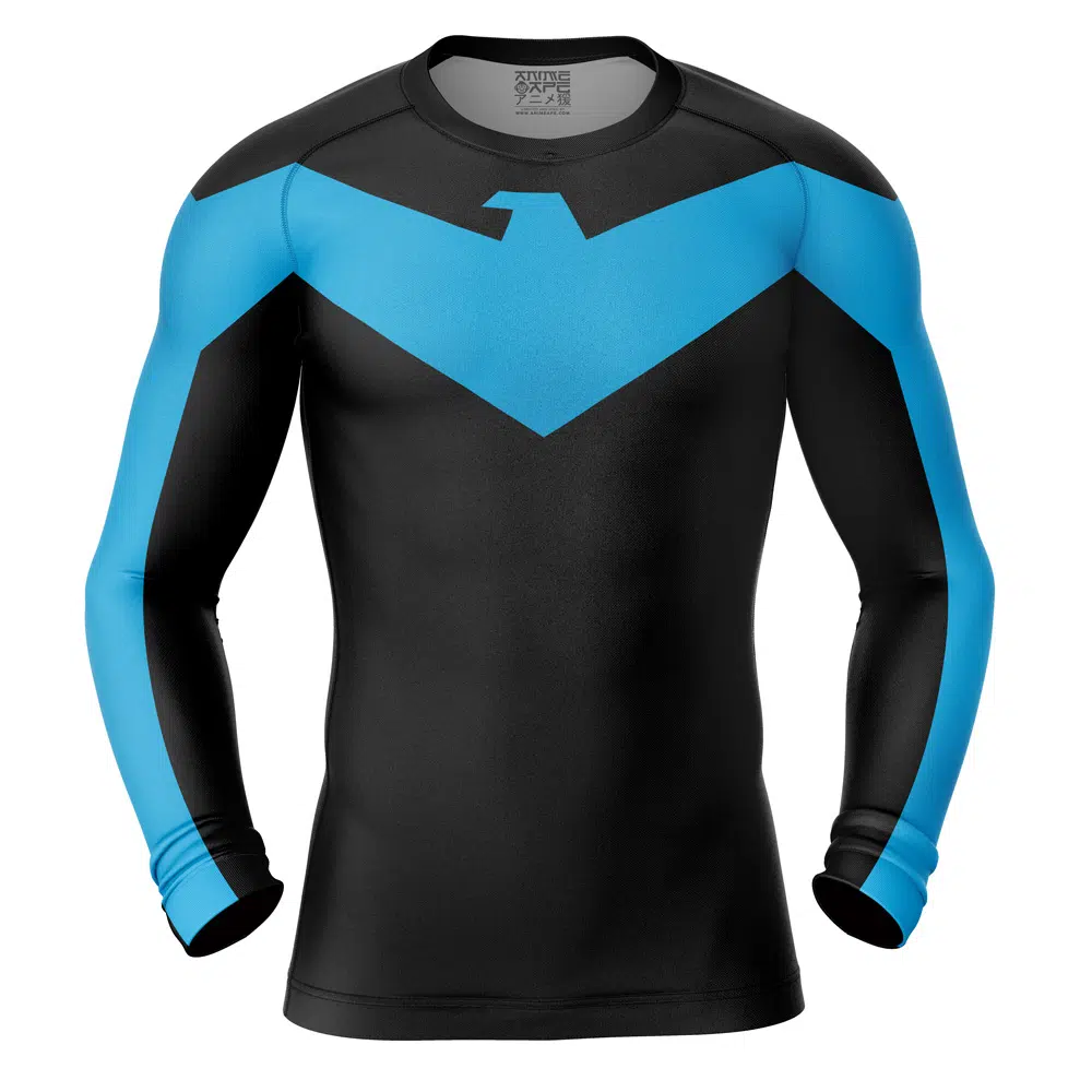 Nightwing DC Comics Long Sleeve Rash Guard Compression Shirt