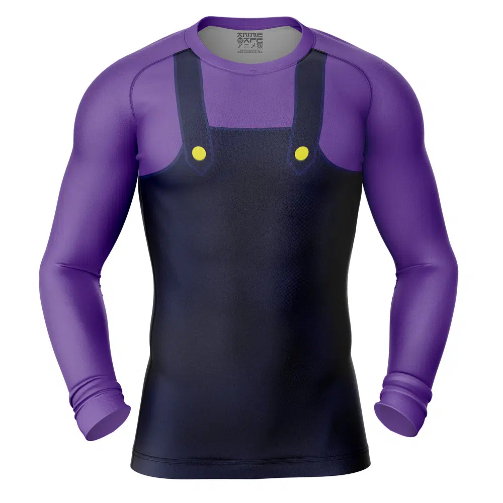 Waluigi Super Mario Bros Long Sleeve Rash Guard Compression Shirt