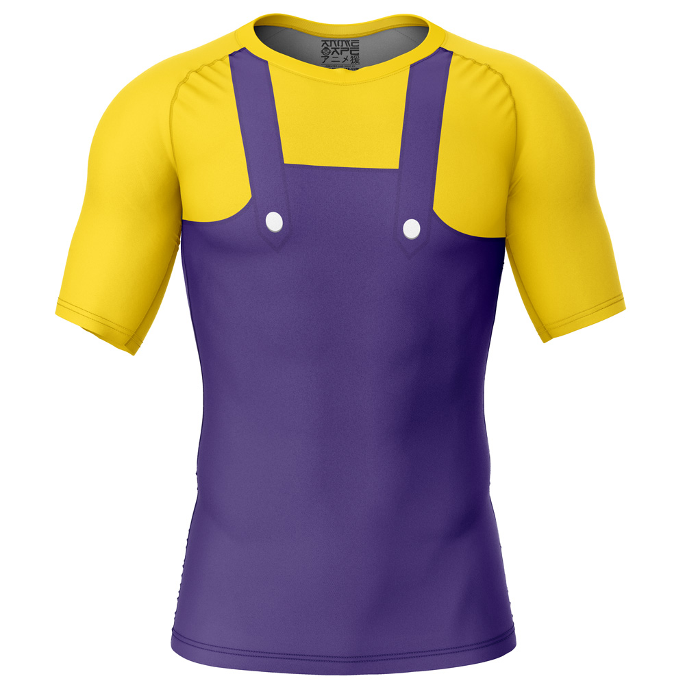 Wario Super Mario Bros Short Sleeve Rash Guard Compression Shirt